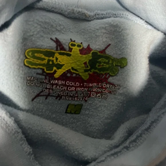 baby blue sp5der hoodie w/rhinestones, size M, looking for offers. PRICES ARE NEGOTIONABLE