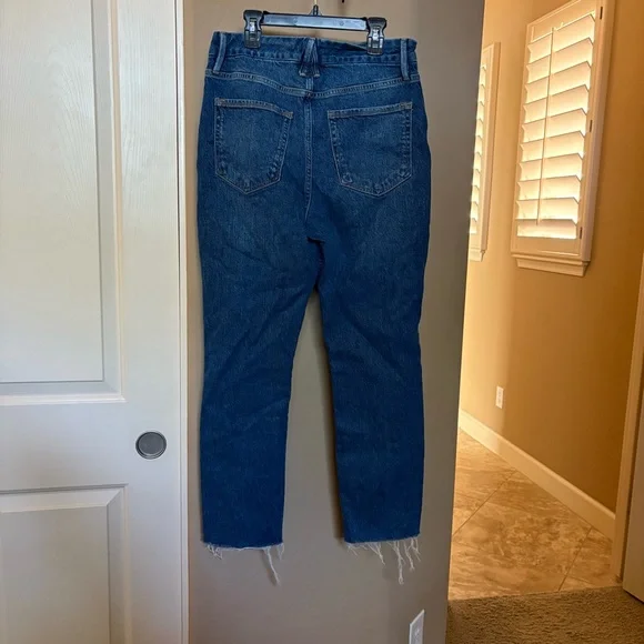Make an offer!Brand: Good AmericanGood Classic Raw Hem Straight Leg Jeans Style #GCRH086TFTSize: 12/31Color: Medium Wash/Blue940Approximate measurements with the garment laying flat: Waist: 16” Hips: 19” Rise: 12” Inseam: 27.5” Length: 39” Leg opening: 7.25”Material: 66% Cotton 33% Lyocell1% ElastaneStretch: YesCondition: EUC/excellent preowned condition Smoke free, pet friendly home 62425