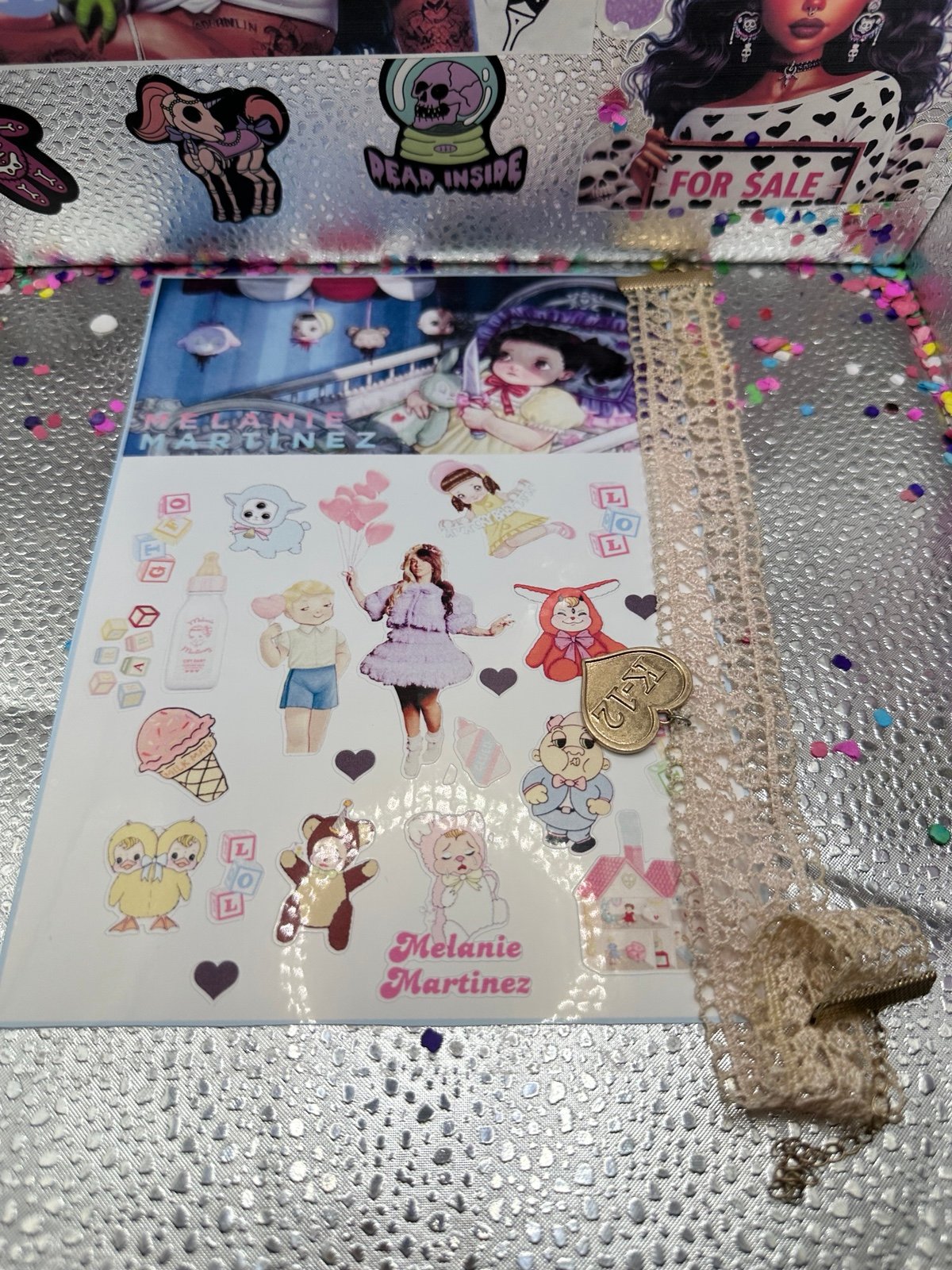 Melanie martinez rushton doll inspired handmade large sticker sheet choker for size <<< please view all photos carefully vinyl sticker sheet already laminated great size! ʕ´• ᴥ•̥`ʔ